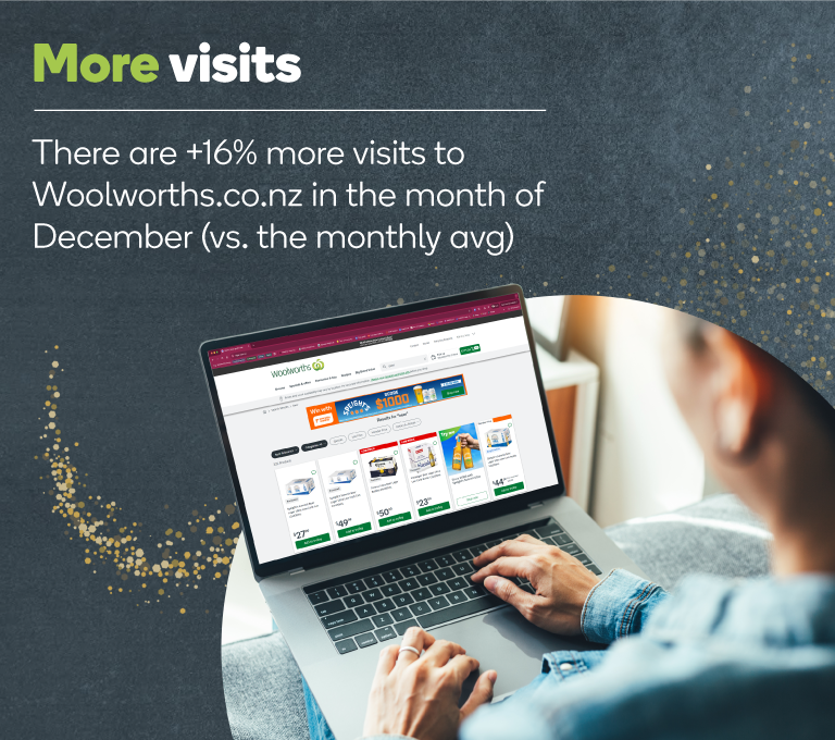 December 2024 saw a sharp 16% increase in monthly users on woolworths.co.nz. This is where shopping lists turn into orders, and browsing turns into buying. So how do you effectively connect with these high intent shoppers?